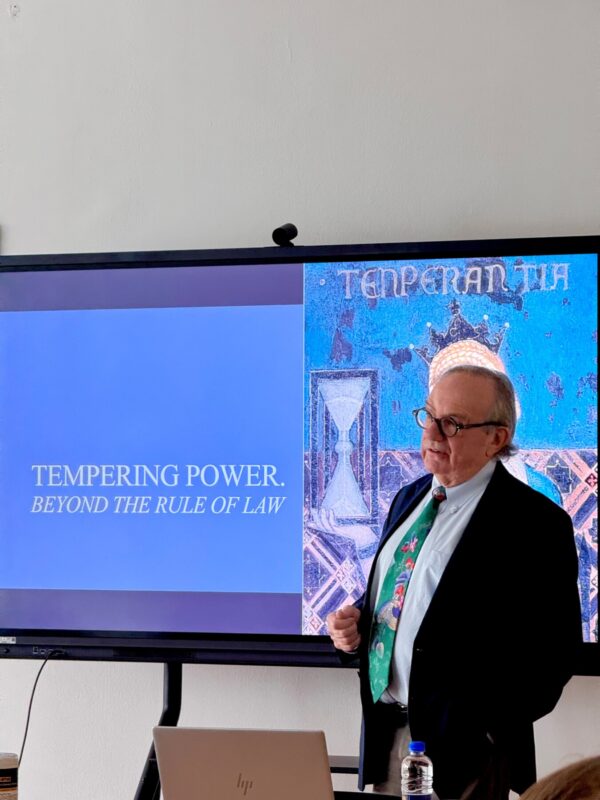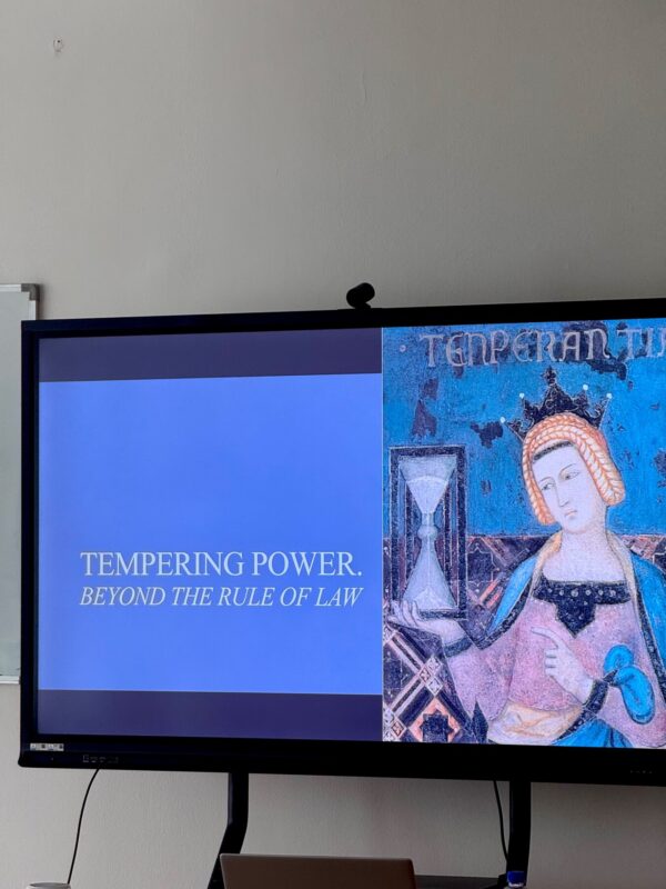 V predavanju je prof. Krygier predstavil ključne ideje svoje prihajajoče znanstvene monografije Tempering Power. Beyond the Rule of Law ter razmišljal o tem, kako v sodobnih družbah omejevati politično moč in preprečevati njeno zlorabo. Posebej je izpostavil, da zgolj formalno razumevanje vladavine prava pogosto ne zadostuje za učinkovito omejevanje oblasti, zato je potrebno širše razumevanje institucionalnih, pravnih in družbenih mehanizmov, ki prispevajo k nadzoru nad oblastjo.